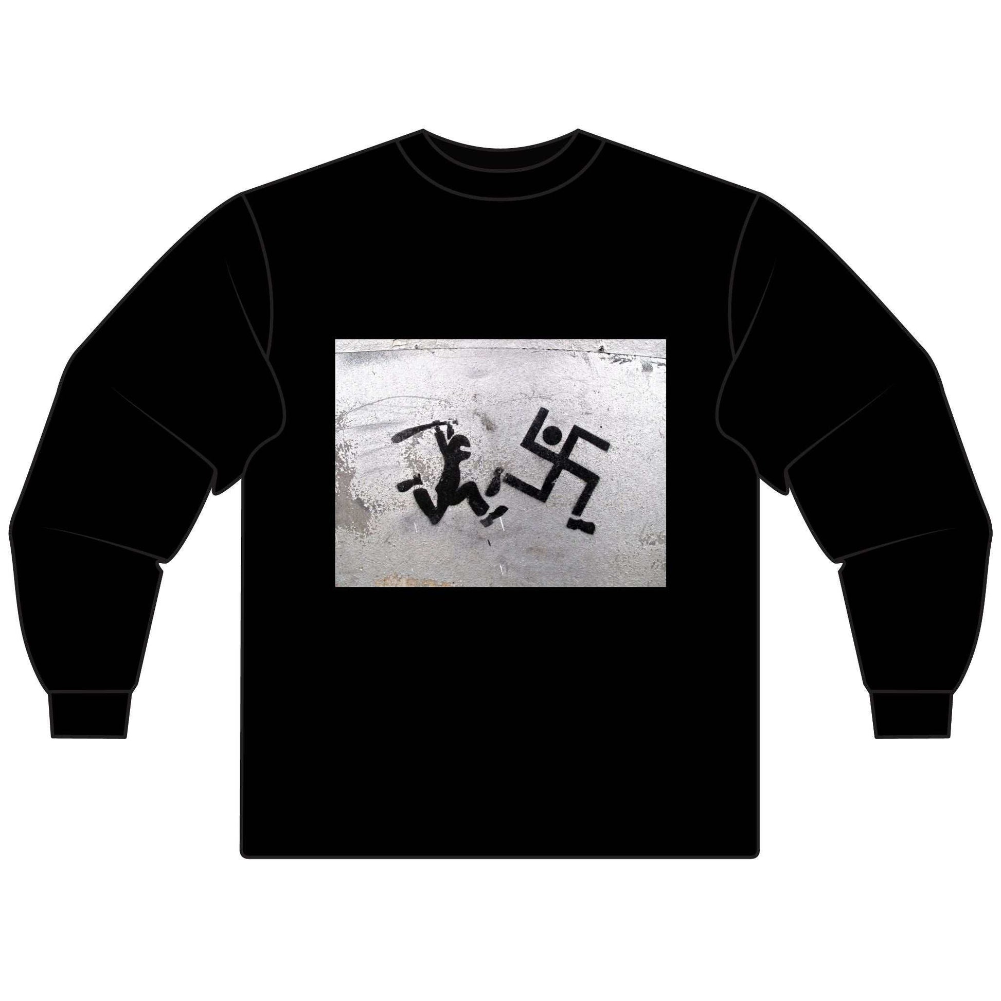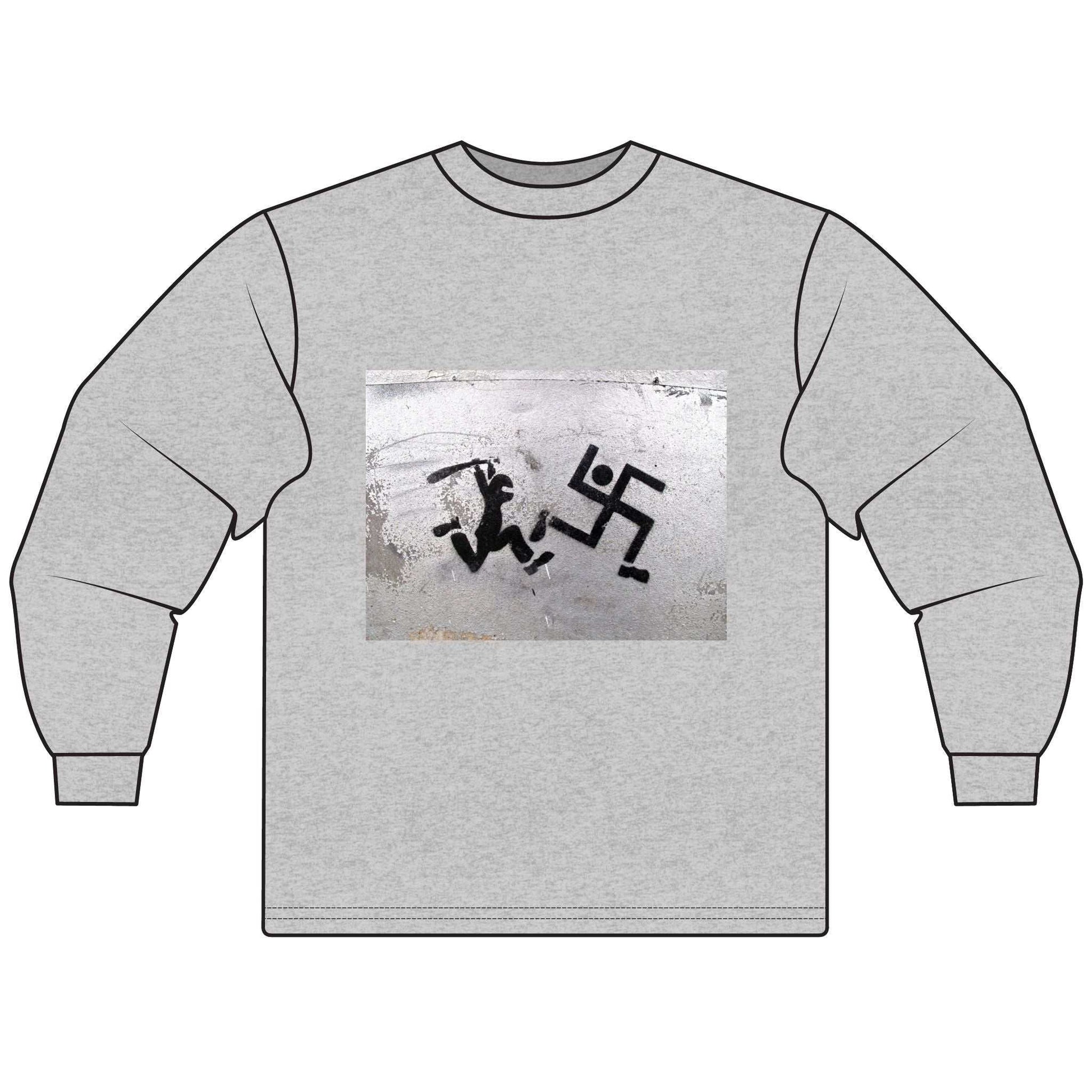 Antifascist with Club Chasing Swastika, Unisex Long Sleeve T-Shirt