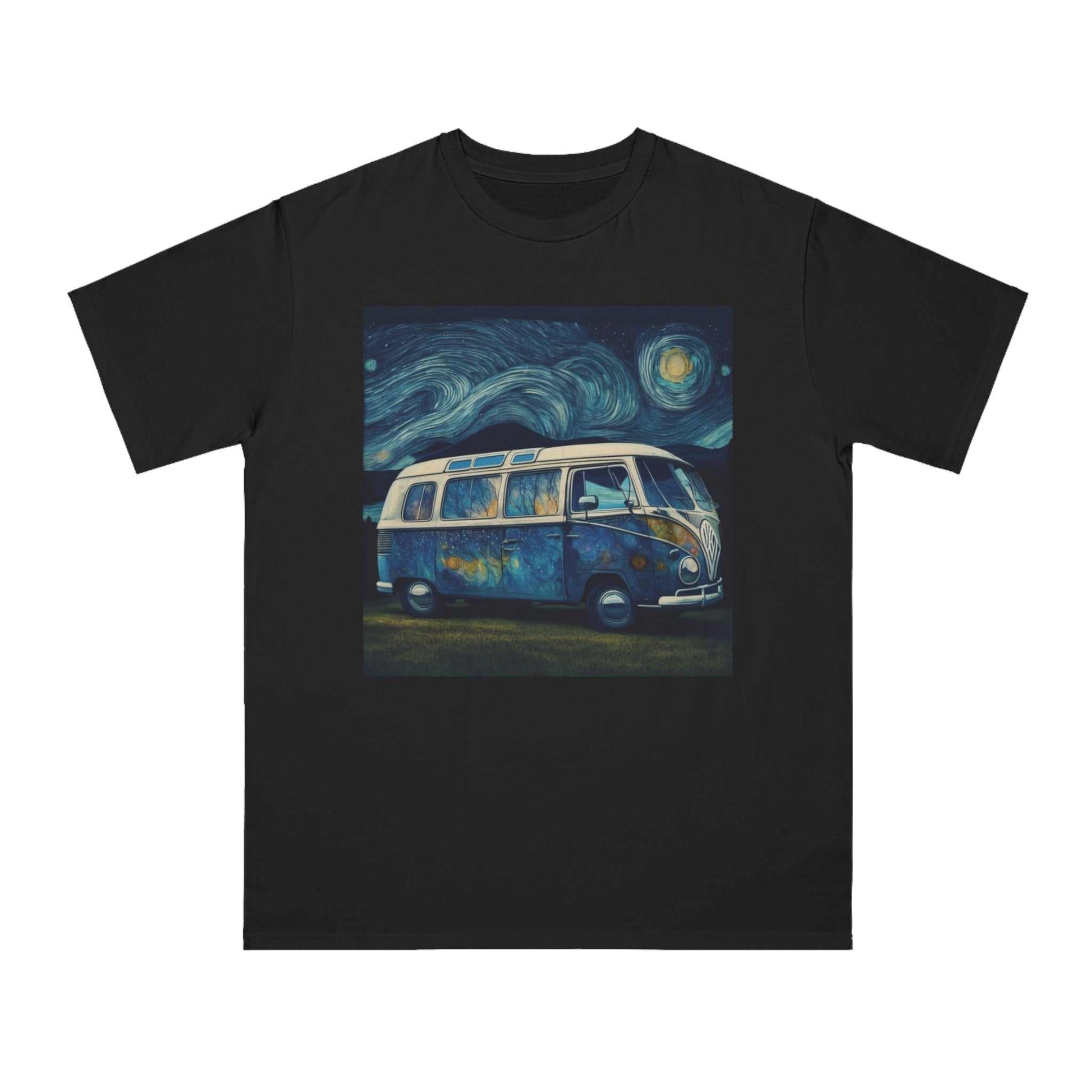 This Starry Night VW Camper Van T-Shirt gives off a cool and 60's adventurous vibe, perfect for outdoor enthusiasts and travelers. It is a great addition to a casual wardrobe and can be worn for camping trips, road trips, and summer adventures.